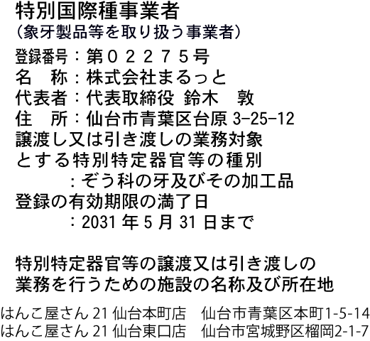 はんこ屋さん21仙台本町店をご愛顧頂き、誠にありがとうございます。